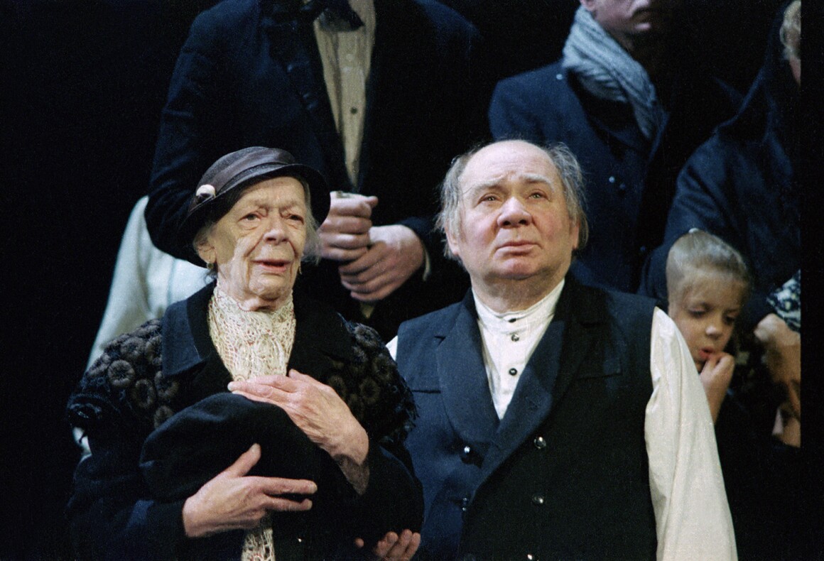 Специально для нее Григорий Горин в спектакле "Поминальная молитва" прописал роль старой еврейки Берты, где почти не было слов — запомнить большой текст Татьяна Ивановна уже не могла. Александр Абдулов играл ее сына и бережно выводил ее на сцену. Зал встречал любимую актрису долгими овациями, стоя, со слезами на глазах…